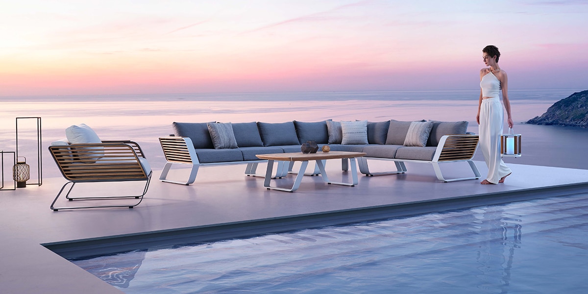 Uno degli aspetti più distintivi è la sua leggerezza visiva. Ogni pezzo sembra fluttuare nell'aria, come se fosse sostenuto da ali invisibili. Questa leggerezza è ottenuta grazie all'uso sapiente di materiali avanzati e alle linee pulite e sinuose del design. Il risultato è un'atmosfera di eleganza eterea che trasforma qualsiasi spazio esterno in un'oasi di serenità.